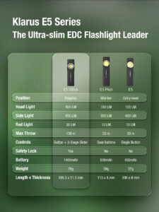 Klarus E5 Ultra in Black – 800 Lumens, 120 Metres