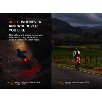 Lighting Modes: Eight lighting modes including spinning light, two brightness levels of constant on/slow flash/fast flash, and a braking light