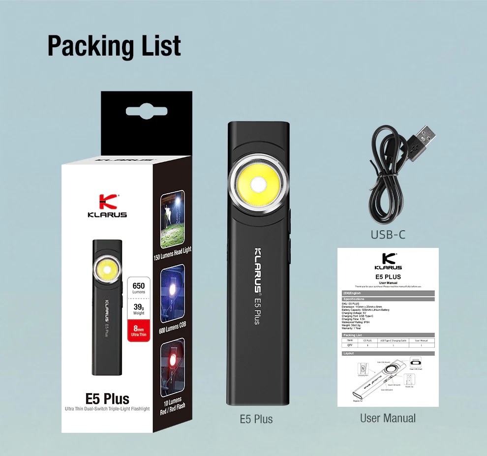 Designed for practicality and everyday reliability, the Klarus E5 Plus offers a smart balance of brightness, portability, and functionality for both professional tasks and daily use.