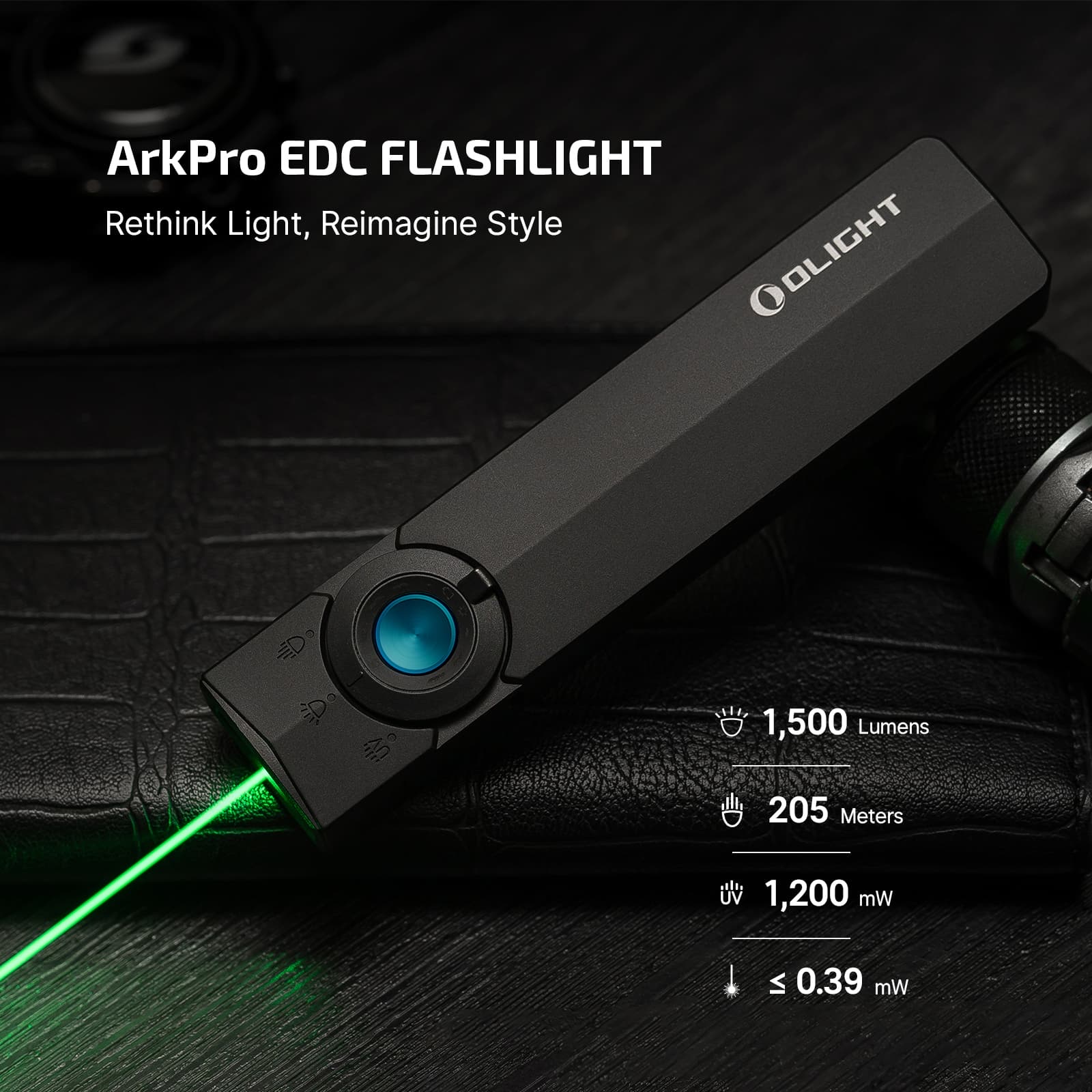 Olight ArkPro EDC Torch with Multi-Light Sources in Matte Black – 1500 Lumens, 205 Metres