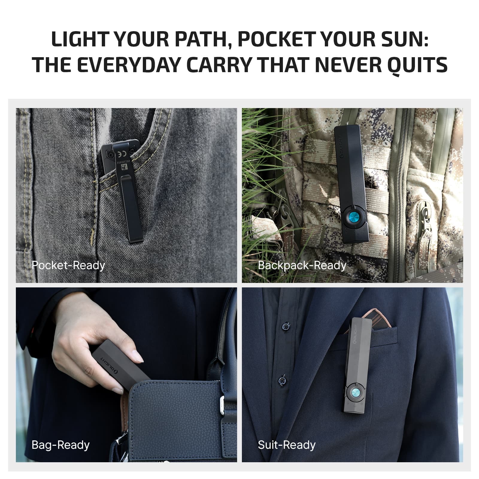 The Olight ArkPro is a slim, flat-profile EDC torch engineered to deliver powerful and adaptable lighting in a compact, premium design. Capable of producing an impressive 1,500-lumen flood beam and a focused spotlight that reaches up to 205 metres, this torch performs exceptionally well both up close and at distance. With additional UV and green light sources, it’s built to handle inspection tasks, signalling, outdoor use, and daily carry needs with ease. Finished in matte black and constructed from durable aluminium, the ArkPro combines refined styling with serious performance.
