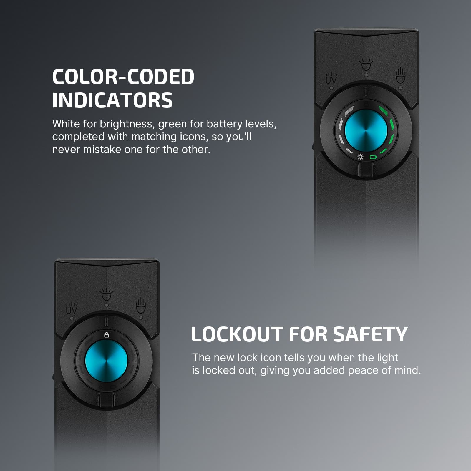 The ArkPro offers a powerful blend of brightness, versatility, and portability. Whether you’re working outdoors, navigating a dark environment, inspecting surfaces using UV, or signalling with the green beam, this compact torch adapts effortlessly. Its flat, ergonomic shape makes it extremely easy to carry, while its robust construction ensures dependable performance in everyday or demanding conditions.