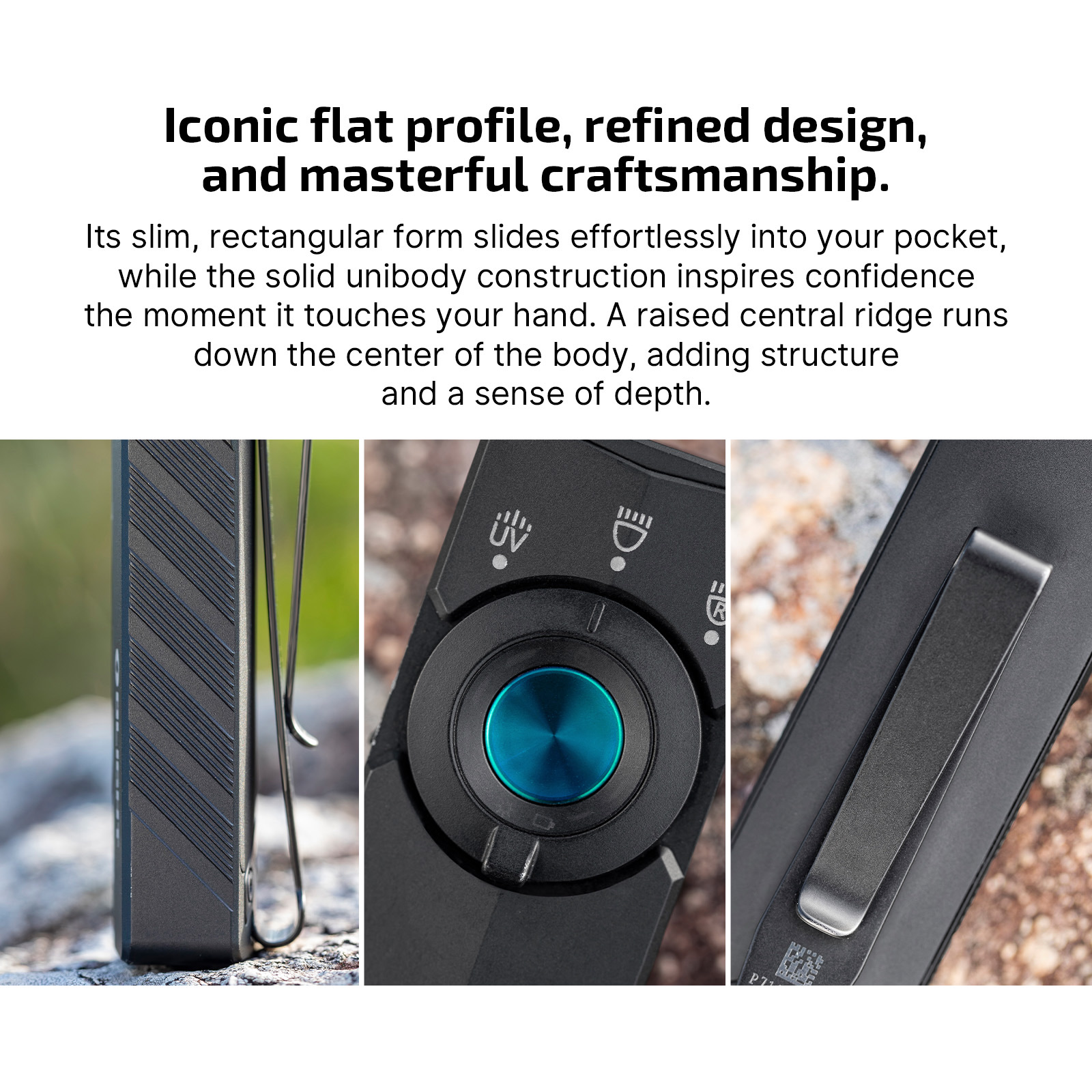 The Olight ArkPro Lite is a slim, flat-profile EDC torch designed for users who want powerful performance in a compact, durable form. Delivering up to 1200 lumens of bright white light and a beam reaching approximately 94 metres, this flashlight is ideal for daily use, outdoor activities, inspections and emergency situations. Alongside its main LED, it also includes red and UV light options, giving you multiple lighting tools in one. With USB-C charging, rugged construction and a sleek matte black finish, the ArkPro Lite is a versatile everyday torch built for convenience and reliability.