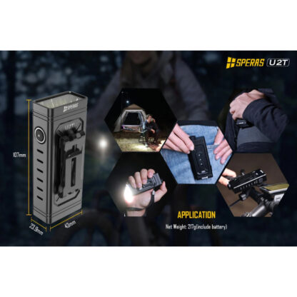 The compact and multifunctional Speras U2T has a tail switch, as well as a side switch operation (Speras U2 only has side switch operation), and delivers a whopping 5000 lumens up to 340 metres distance. Speras U2T utilises 3x Luminus SST40 LEDs, advanced driver, is iP68 waterproof rated, can be used as a handheld flashlight, and also comes supplied with a mounting bracket, so that it can be used as a bike light.