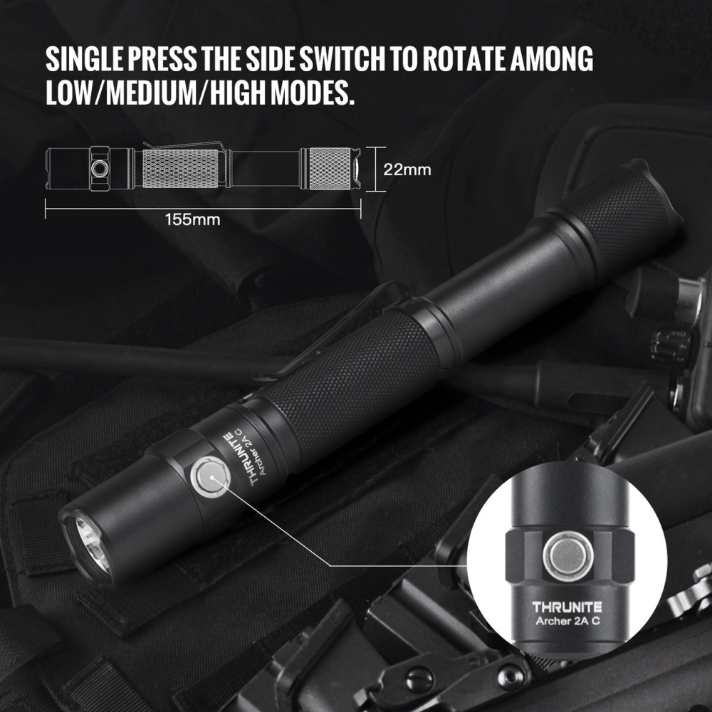 Included Accessories: Pocket clip x1, ThruNite 1600mAh rechargeable battery x1, USB-C Charging cable x1, Spare O-ring x2, Lanyard x1.